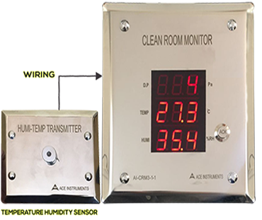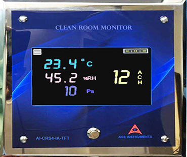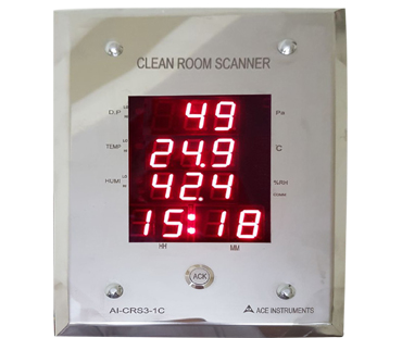 The ACE INSTRUMENTS make Pharma Clean Room Monitor is designed to measure the vital parameters of Temperature, Humidity and Differential pressure in pharma clean room applications. The clean Room Monitor Model AI-CRM1-1 is designed for minimum cabling and easy flush mounting in modular wall panels or brick walls of Clean Room.